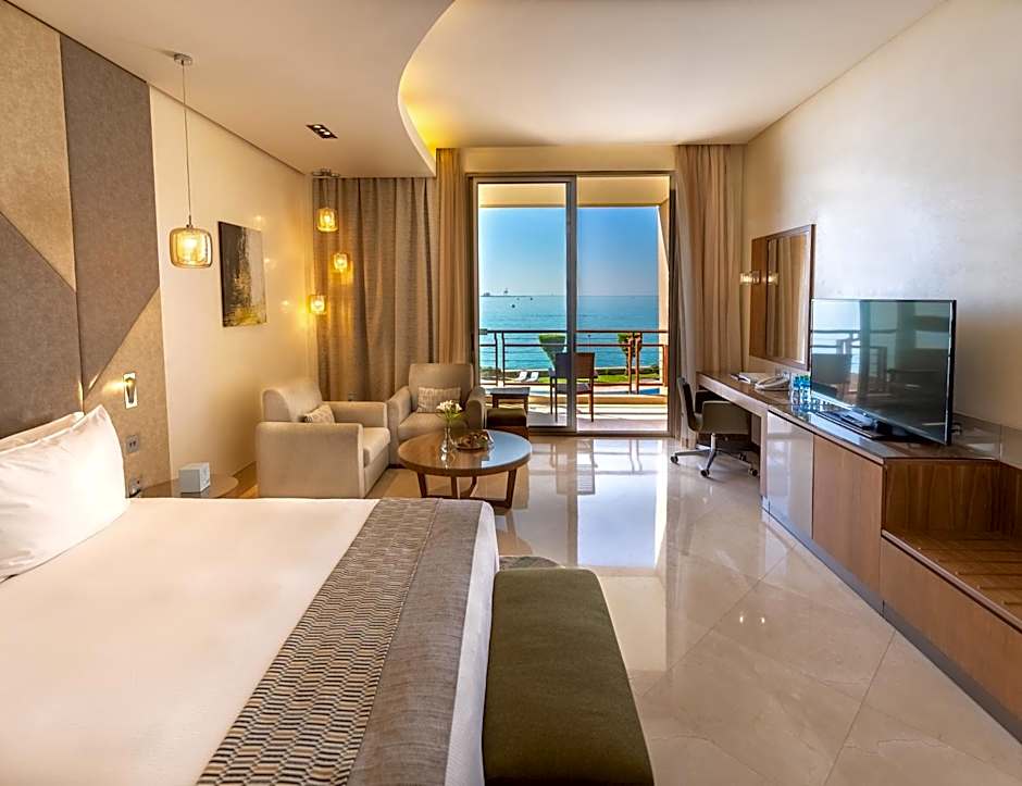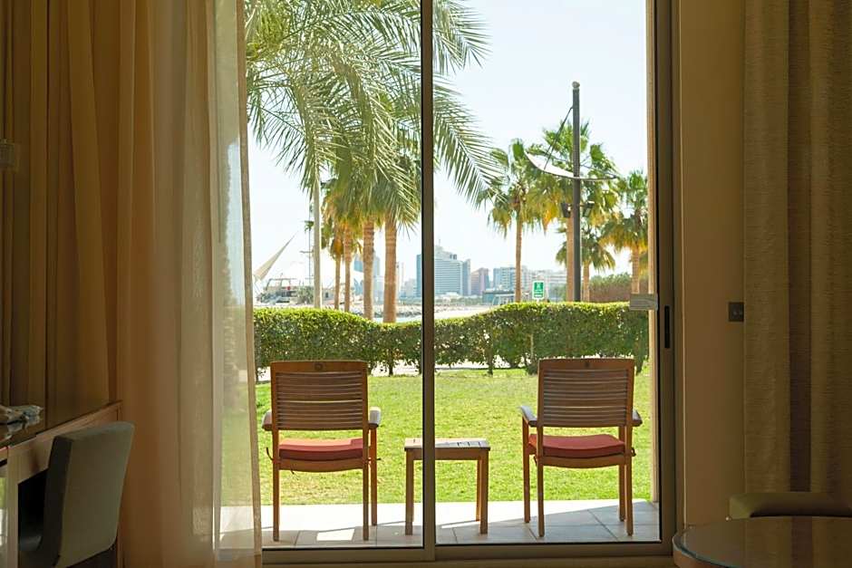 Offering views of the Arabian Gulf and coast line, deluxe rooms are located on the ground floor and provide direct pool access.